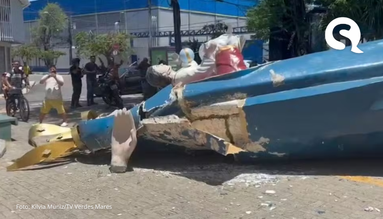 Com o impacto, várias partes da estátua foram danificadas e os ferros que sustentavam a base do monumento ficaram à mostra.