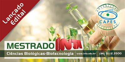 Estão abertas até o dia 28 de novembro de 2014 as inscrições para a seleção do Programa de Mestrado Acadêmico em Ciências Biológicas das Faculdades INTA. Com oferta de 12 vagas, com bolsas de estudo oferecidas pela CAPES, o processo seletivo será composto por três fases: prova de conhecimentos específicos, prova de proficiência na Língua Inglesa e análise curricular.