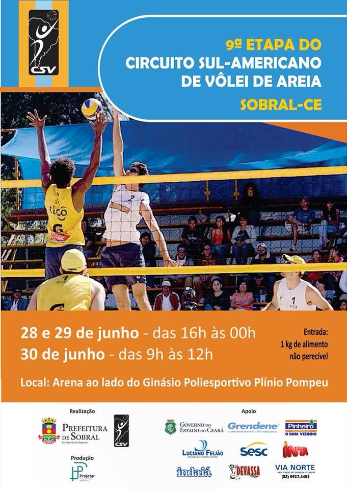 Todos os jogos da 9ª Etapa (Final) do Circuito Sul-Americano de Vôlei de Areia, realizada em Sobral, serão transmitidos em tempo real através internet pelo site da Confederación Sudamericana de Voleibol (CSV): Clique AQUI