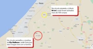 “Por ter dominado as comunidades, eles fizeram um massacre muito grande, matando pais na frente das crianças, matando filhos na frente dos pais. Tô muito ruim. Perdi muitos alunos, muitos alunos meus perderam os pais. Uma criança de 6 anos, aluna minha, mataram o pai e a mãe na frente dela. Dois alunos meus estão reféns na Faixa de Gaza”, afirma Francisco.