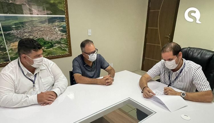 Na foto, estou ao lado do Secretário de Serviços Públicos, Michel Ângelo e do representante da empresa FM Rodrigues & CIA LTDA, Marcos Antônio de Oliveira.