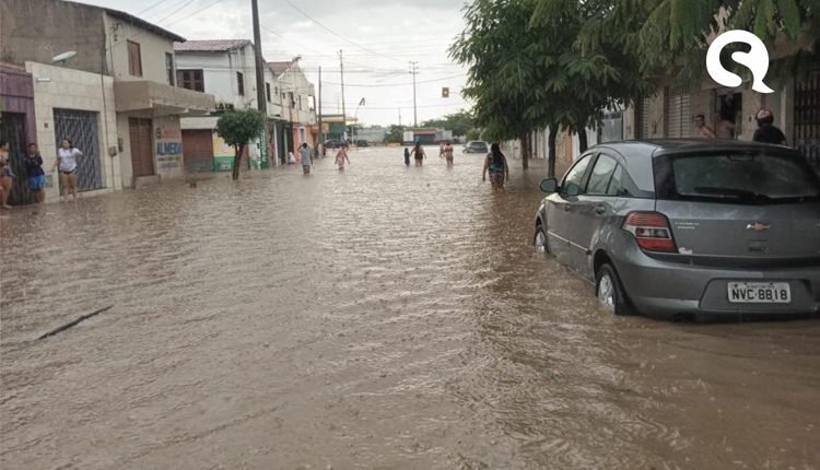 Forte chuva atinge Santa Quitéria, inunda escola e causa alagamento em diversas ruas da cidade