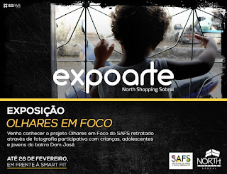 A galeria ExpoArte do North Shopping Sobral recebe durante esse mês de fevereiro a exposição “Olhares em Foco” da Sociedade de Apoio à Família Sobralense (SAFS). A exposição faz parte do projeto Olhares em Foco, de fotografia participativa, realizado desde 2014 com crianças, adolescentes e jovens do bairro Dom José, em Sobral.