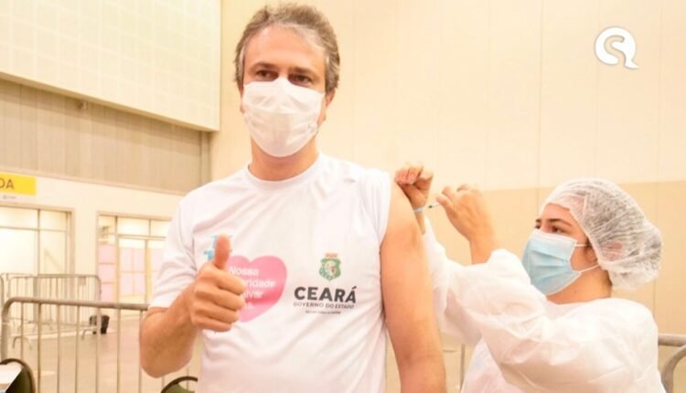 Governador Camilo Santana é vacinado contra a Covid-19 no Centro de Eventos, em Fortaleza