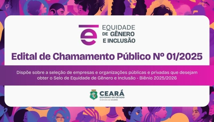 O Governo do Ceará, por meio da Secretaria das Mulheres, divulga a abertura das inscrições para empresas e organizações públicas e privadas interessadas na obtenção do Selo de Equidade de Gênero e Inclusão para o biênio 2025/2026, que certifica e reconhece organizações públicas e privadas que desenvolvem, de forma contínua, projetos e programas voltados para a promoção da equidade de gênero. As inscrições estarão abertas de 07 a 19 de fevereiro.