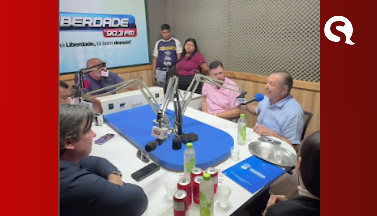 O prefeito Aníbal Filho, o deputado estadual Romeu Aldigueri e o secretário de Desenvolvimento Econômico do Ceará, Domingos Filho, ao lado do empresário Fernando Pessoa, anunciaram a instalação de uma fábrica de colchões no município de Granja, na tarde desta quinta-feira (10), durante entrevista exclusiva à Rádio Liberdade, no programa Liberdade Notícias.