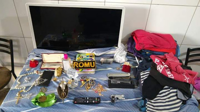 Foi feita uma minuciosa averiguação, onde foi constatado que os produtos oriundos do furto, ele havia escondido todos na Praça do Bosque. Foi recuperado pelo ROMU 02: 1 smart TV LG, relógios, cordões , roupas, etc. Vítima e infrator foram conduzidos para a Delegacia Regional de Polícia Civil 24 horas, onde foram realizado os procedimentos cabíveis.