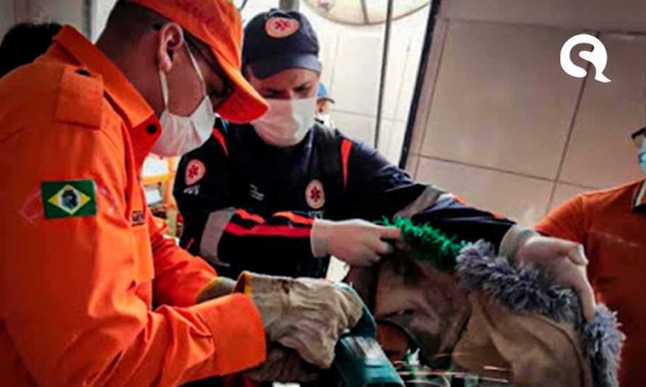 Um funcionário de um açougue foi resgatado pelo Corpo de Bombeiros Militar e pelo Samu após ficar com a mão presa nas engrenagens de uma máquina de amaciar carne em um estabelecimento da cidade de Quixeramobim, no interior do Ceará, na manhã deste domingo (1º).