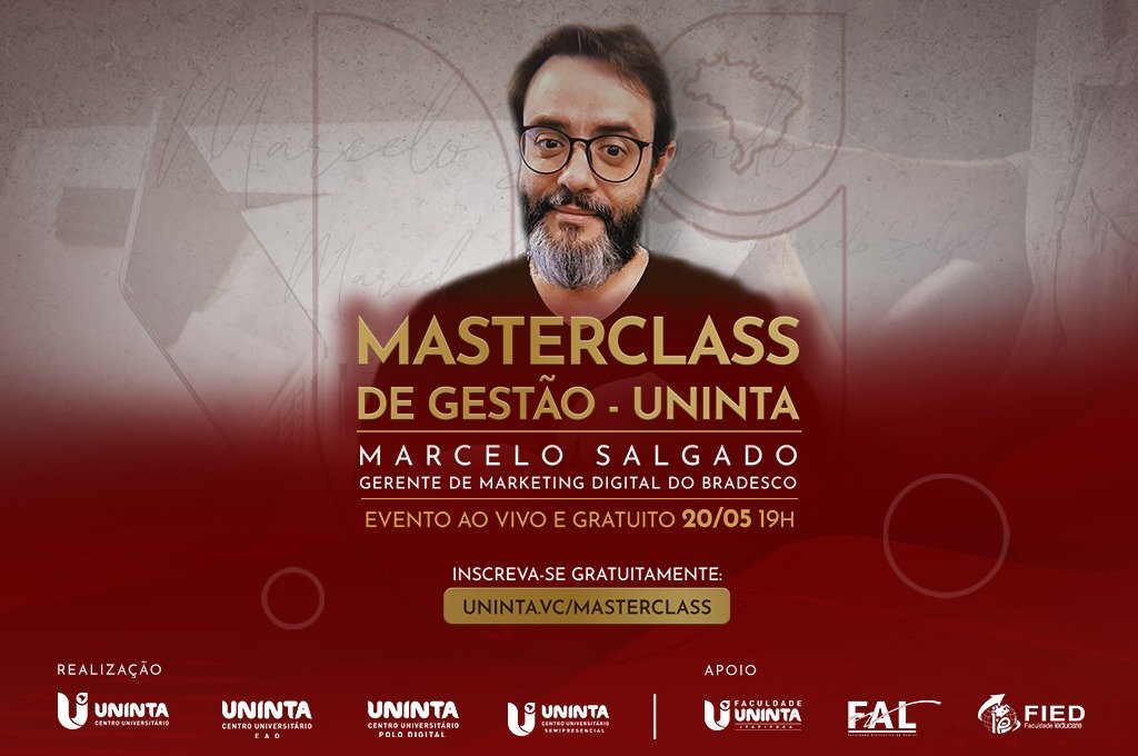 Aberto ao público em geral, o evento terá início às 19h do dia 20 de maio. As inscrições são gratuitas e devem ser feitas até o dia do evento no endereço uninta.vc/masterclass.
