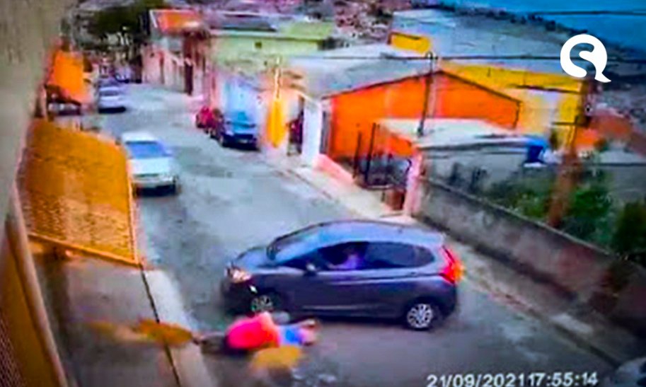 Imagens de câmeras de segurança mostram o momento em que o suspeito sai da residência das vítimas e aponta uma arma para o idoso, identificado como Domingos. A vítima cai no chão, é chutada pelo bandido e ainda tem seu pé atropelado na fuga.