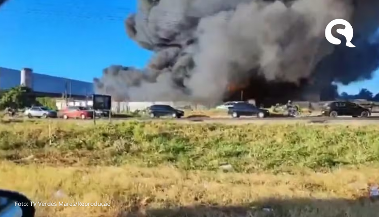 Incêndio atinge fábrica de colchões em Maracanaú e fumaça é vista até em cidades vizinhas