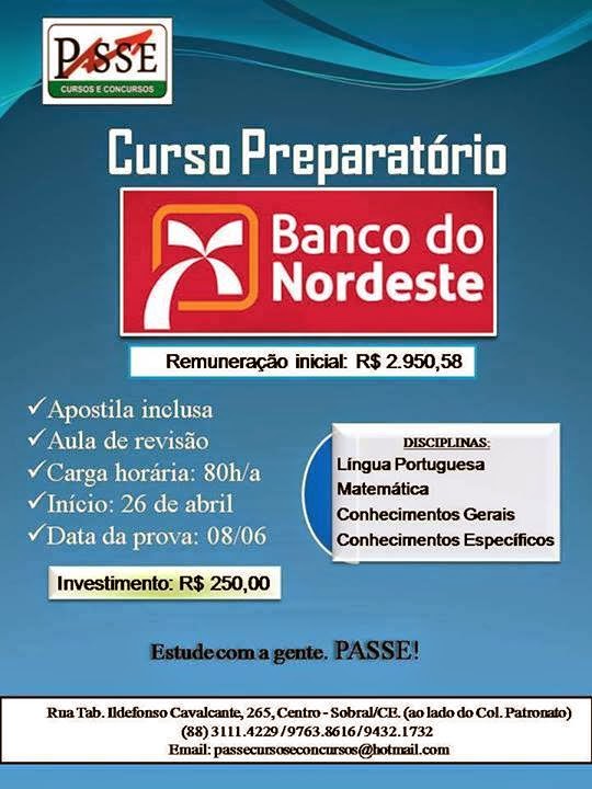 Notícias Passe | Prepare-se para o concurso do Banco do Nordeste On 24 abr 2014 Clique na imagem para ampliar Compartilhar