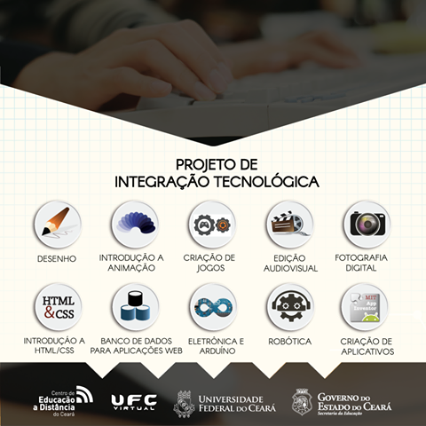 O Projeto de Integração Tecnológica abre as inscrições para os cursos gratuitos nas áreas de Tecnologias, Sistemas e Mídias Digitais, que acontecerão no Centro de Educação a Distância do Estado do Ceará (CED), no dia 29 de agosto (sábado), das 8h as 12h e das 14h as 18h.