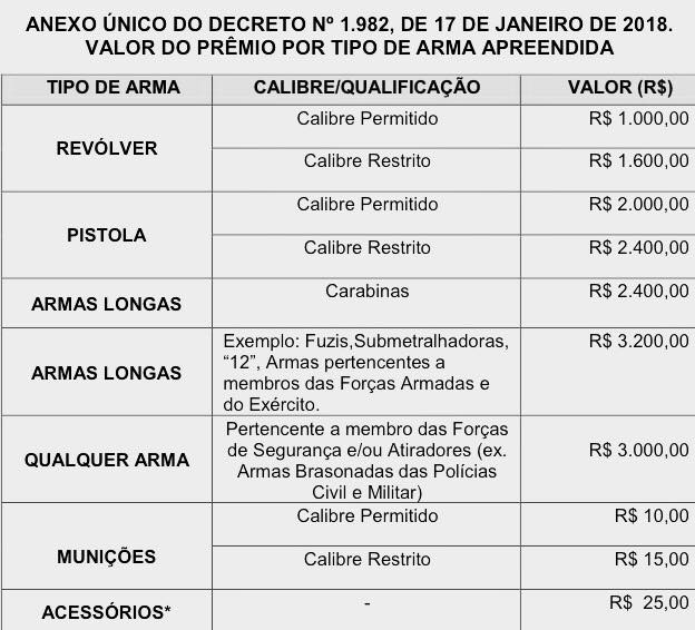 Num total de R$ 17,6 mil, a premiação refere-se à apreensão de nove armas de fogo, 59 munições e à conclusão de sete inquéritos policiais com indiciamento dos acusados por crimes dolosos contra a vida. As premiações, conforme o prefeito, serão pagas todos os meses aos agentes.