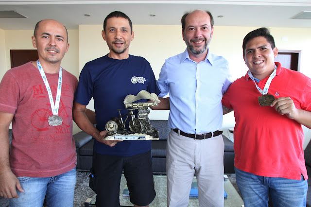 O prefeito de Sobral, Ivo Gomes, recebeu, nesta sexta-feira (03/02), em seu gabinete, os atletas sobralenses que participaram da maior competição de rally do Nordeste, o Piocerá. Neste ano, o município arrastou dois troféus na categoria ciclismo. Os atletas sobralenses João Batista e Fernando Venâncio conquistaram o 3º e o 4º lugar, na mesma modalidade, respectivamente.