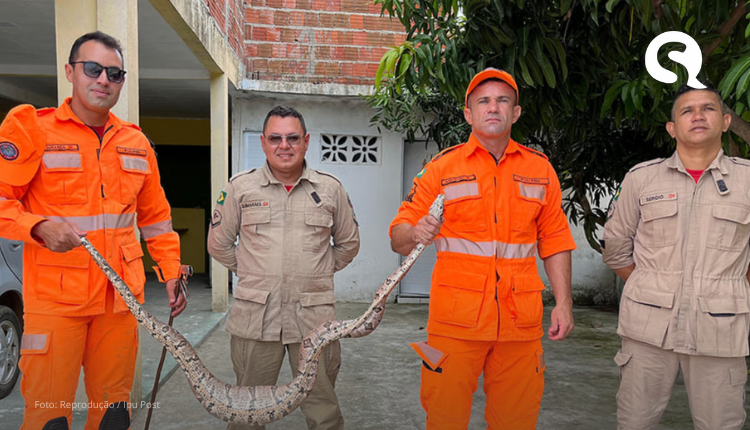Jiboia de 2 metros é encontrada em quintal de residência em Ipueiras