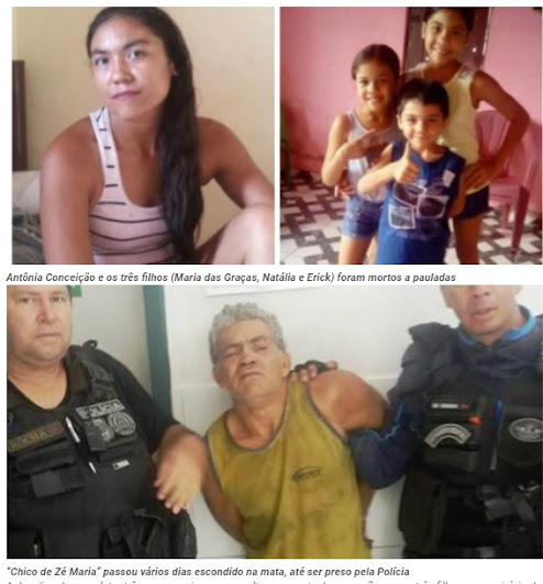 Conforme o documento, Francisco Cloves, conhecido como Chico do Zé Maria, 53 anos, não aceitava o fim do relacionamento com a ex-mulher, então com 30 anos, e demonstrava ciúmes por ela, o que culminou no assassinato a pauladas da vítima e de seus três filhos em 4 de dezembro de 2017. Logo depois do crime, o homem ainda ateou fogo na casa onde a ex-companheira morava.