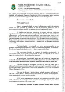 A sentença do Mandado de Segurança impetrado pelo vereador Romário Araújo de Sousa, contra ato supostamente ilegal praticado pelo Presidente da Câmara de Vereadores de Sobral, o Sr. Carlos Evanilson Oliveira Vasconcelos, foi assinado pelo Juiz de Direito, Aldenor Sombra de Oliveira.