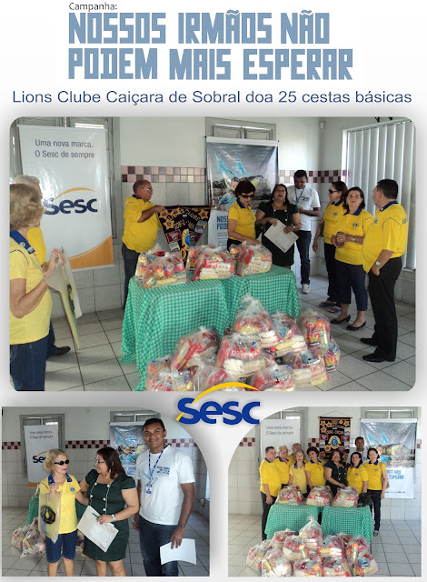 O Lions Clube Caiçara de Sobral doou nesta segunda(1), 25 cestas básicas para as vítimas da seca no Ceará, através da capanha: Nossos Irmãos não podem esperar, idealizada pelo sistema Fecomércio (SESC/SENAC) com o apoio do sistema Verdes Mares e Sindiônibus.