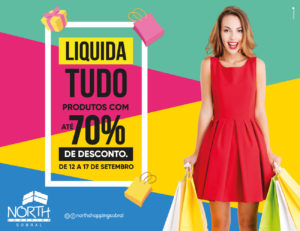 A temporada de liquidação continua durante esta semana no North Shopping Sobral. Quem não dispensa descontos está aproveitando ofertas imperdíveis na LiquidaTudo. São diversas lojas participantes com descontos de até 70% em todos os setores: roupas, calçados, cama mesa e banho, perfumaria, acessórios, eletrônicos e produtos diversos.