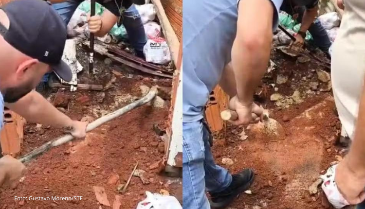 O corpo estava em uma cova rasa, já em estado avançado de decomposição, e apresentava sinais de lesões provocadas por instrumento contundente, possivelmente causadas por ferramentas.