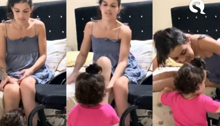Mãe paraplégica se emociona ao receber ajuda para se deitar da filha de apenas 1 ano