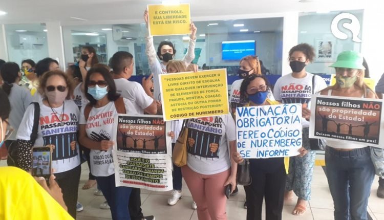 Manifestantes contrários à obrigatoriedade do passaporte da vacina em Fortaleza estão concentrados, na manhã desta quarta-feira, 1°, na Câmara Municipal de Fortaleza (CMFor). A Casa aprovou a realização de uma audiência pública para discutir a obrigatoriedade do passaporte de vacinação na Capital.