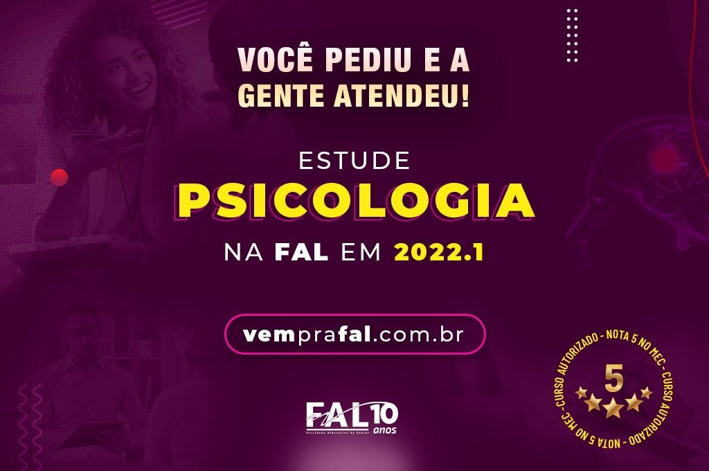 O Curso de Psicologia da FAL tem como objetivo formar profissionais capazes de diagnosticar, planejar, executar e avaliar necessidades de intervenção em diferentes contextos institucionais, possibilitando a superação de problemas e dificuldades que comprometem os indivíduos, grupos, organizações e comunidades, permitindo a promoção da saúde e da qualidade de vida.