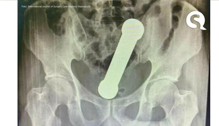 O haltere estava entre o reto e o intestino grosso do paciente, que, depois do exame, admitiu ter introduzido o peso de academia no corpo para obter satisfação sexual.