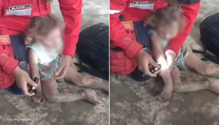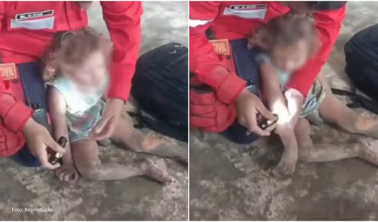Um vídeo mostra o momento em que o menino retorna para casa após ser encontrado. Nas imagens, ele aparece sujo de lama enquanto um bombeiro avalia se há sinais de ferimentos.