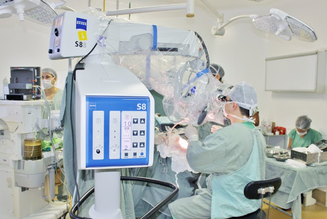 O microscópio de última geração (Vario S88, Zeiss®) foi obtido mediante processo licitatório ocorrido no início deste ano. A aquisição deste equipamento representa um importante avanço na realização de cirurgias de grande precisão na Santa Casa, referência regional no atendimento a doenças de alta complexidade em diversas especialidades.
