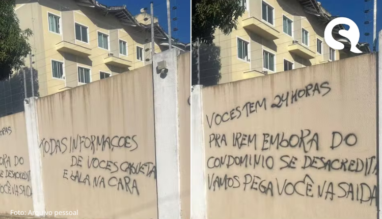 “Vocês têm 24 horas para irem embora do condomínio, se desacreditar, vamos pegar você na saída”, diz uma das mensagens colocadas no muro do condomínio.