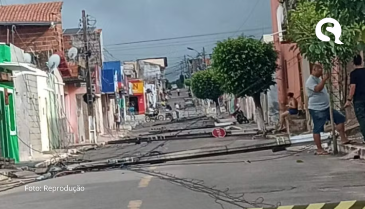 Imagens registradas por uma moradora mostram o cenário de surpresa e preocupação entre os residentes. No vídeo, ela relata que praticamente todos os postes da rua estavam no chão, desde o início da via até as proximidades da delegacia do município.