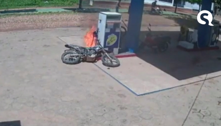Moto pega fogo ao abastecer em posto de combustível em Granja, interior do Ceará