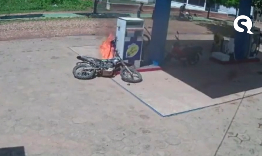 Uma motocicleta pegou fogo no momento em que estava sendo abastecida em um posto de gasolina no distrito de Adrianópolis, a 60km de Granja, na Região Norte do Ceará, na manhã desse domingo (16). Ninguém ficou ferido. Câmeras do circuito de segurança do estabelecimento registraram o incêndio por volta das 11h.