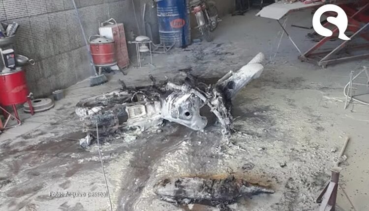 Motocicleta pega fogo, explode e deixa três homens feridos com queimaduras em oficina no Ceará
