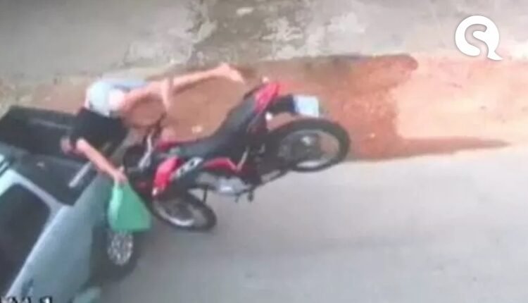 Mesmo após o acidente, o motociclista sofreu apenas ferimentos leves. — Foto: Reprodução