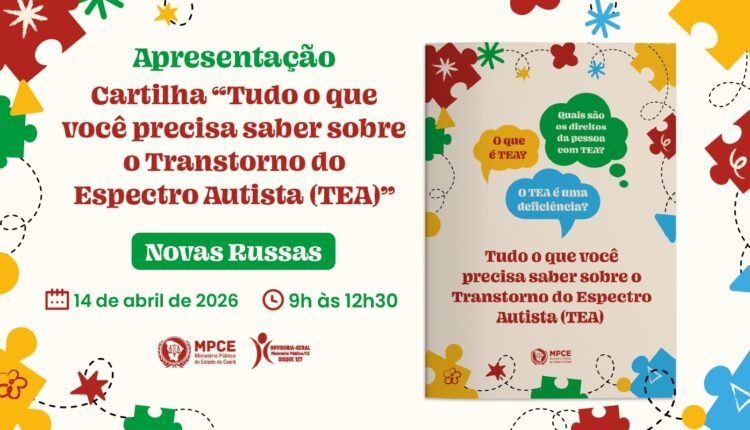 O Ministério Público do Ceará realizará, no dia 14 de abril, a apresentação da cartilha 'Tudo o que você precisa saber sobre o Transtorno do Espectro Autista – TEA', em Nova Russas. A ação, aberta ao público, terá início às 9h na Escola de Ensino Fundamental (EMEIF) 11 de Novembro. A iniciativa visa esclarecer a população sobre o TEA e seus direitos.