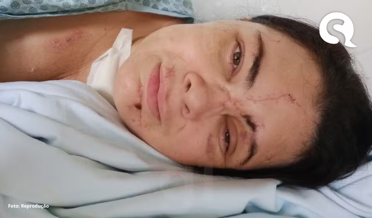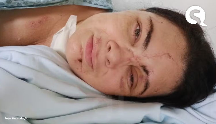Brenna Araújo de Brito, de 36 anos, teve fraturas no maxilar, nariz e testa. Ela também ficou com mais de 60 pontos na cabeça e no rosto.