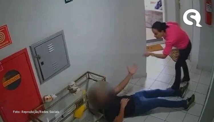 Mesmo com o companheiro caído no chão, ela continua brigando com ele e ainda tenta efetuar mais disparos, mas a arma falha.