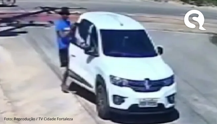 Uma câmera de segurança instalada na Rua Taquatiara, no bairro Messejana, em Fortaleza, flagrou o momento em que uma mulher é assaltada por criminosos, que trafegavam no trecho em um carro de cor branca. No momento do crime, a vítima estava caminhando na via pública, quando foi surpreendida pelos assaltantes.