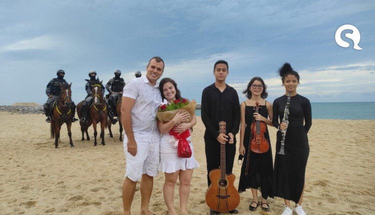 Um pedido de casamento que estava sendo realizado na Praia de Iracema na tarde deste sábado (20) teve que ser acelerado após a cavalaria da Polícia Militar, em cumprimento ao decreto estadual que combate a pandemia do coronavírus, pedir que os noivos se retirassem da faixa de areia. De acordo com o decreto em vigor, os espaços públicos, como a orla, devem fechar às 17h.