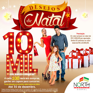 O North Shopping Sobral lançou nesta segunda-feira, 9, a campanha “Desejos de Natal” que irá sortear cinco vale-compras, no valor de R$2 mil cada, que poderão ser utilizados em todas as lojas do Shopping.