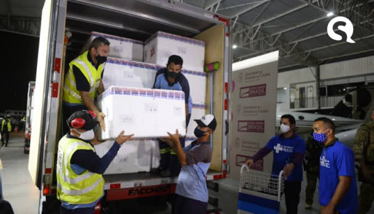 Em 23 de janeiro, o Ceará recebeu o primeiro lote da vacina de Oxford/AstraZeneca. O Estado também recebeu lotes do imunizante CoronaVac, produzido pela empresa Sinovac em parceria com o Instituto Butatan.