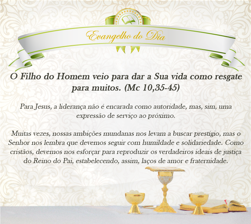 Notícias O Filho do Homem veio para dar a Sua vida como resgate para muitos. (Mc 10,35-45) On 18 out 2015 Compartilhar