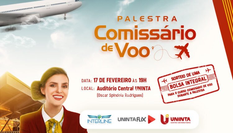 No próximo dia 17 de fevereiro, o Centro Universitário Inta (UNINTA) promoverá a palestra “Comissário de Voo”, em parceria com a Interline Escola de Aviação Civil e UNINTAFlix. O evento acontecerá no Auditório Central Oscar Spíndola Rodrigues, a partir das 19h, e será gratuito. Por ser presencial e atender as normas de biossegurança, o evento terá vagas limitadas, com inscrições pelo WhatsApp.
