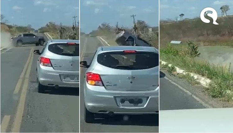 O acidente foi filmado por um motorista que trafegava na rodovia. As imagens mostram o momento que a caminhonete perde o controle ao bater no meio fio. Em seguida, o veículo invadiu a faixa contrária e saiu da pista, caindo em um lago.