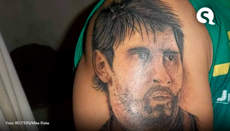 O futebol mexe com emoções e muitas vezes essas paixões despertadas pelo jogo não respeitam territórios e nacionalidades. É o caso do que acontece com Mescias Cavalcanti, de 48 anos, que é professor de futebol na cidade de Mari, na Paraíba, e ‘devoto’ do craque argentino Lionel Messi. Ao ponto de ter tatuado o rosto do ídolo no braço. E agora promete ir mais além em caso de vitória da Argentina na decisão da Copa do Mundo contra a França: vai fazer uma nova homenagem a Messi no corpo e também pretende tatuar o rosto de Maradona.