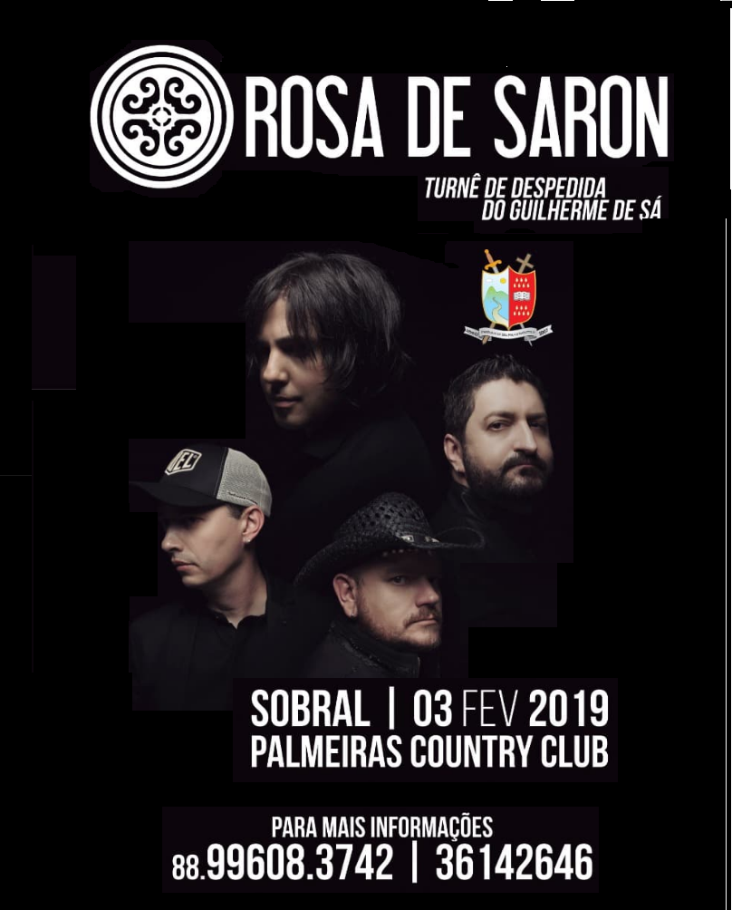 A organização do show da banda Rosa de Saron, que acontece no próximo dia 3 de fevereiro, no Palmeiras Country Club, em Sobral, como parte da turnê de despedida do vocalista Guilherme de Sá, vem por meio desta nota informar que a RENDA LÍQUIDA arrecadada com bilheteria, venda de camisetas e lanchonete no dia do evento, será revestida para a conclusão de vários projetos de assistência pastoral e social nos bairros dos Terrenos Novos e Vila União, coordenados e de responsabilidade da Paróquia de São Paulo Apóstolo da Diocese de Sobral.