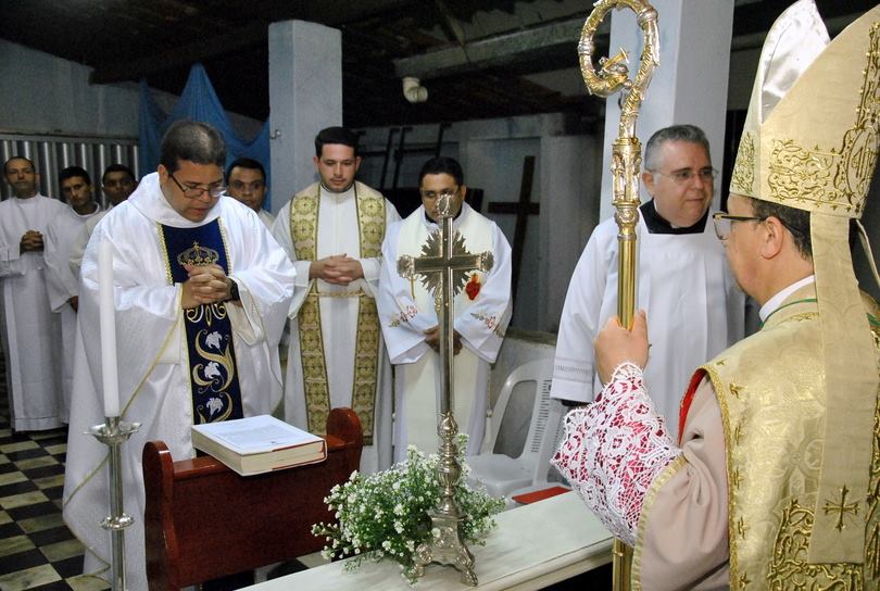 Após a saudação inicial da celebração o Padre Bosco Linhares fez a leitura do documento de nomeação. Antes da celebração de posse o Padre Fábio fez seu juramento e sua profissão de fé diante do Bispo e dos padres. Seguiu-se a Liturgia de acordo com o rito da Santa Missa.
